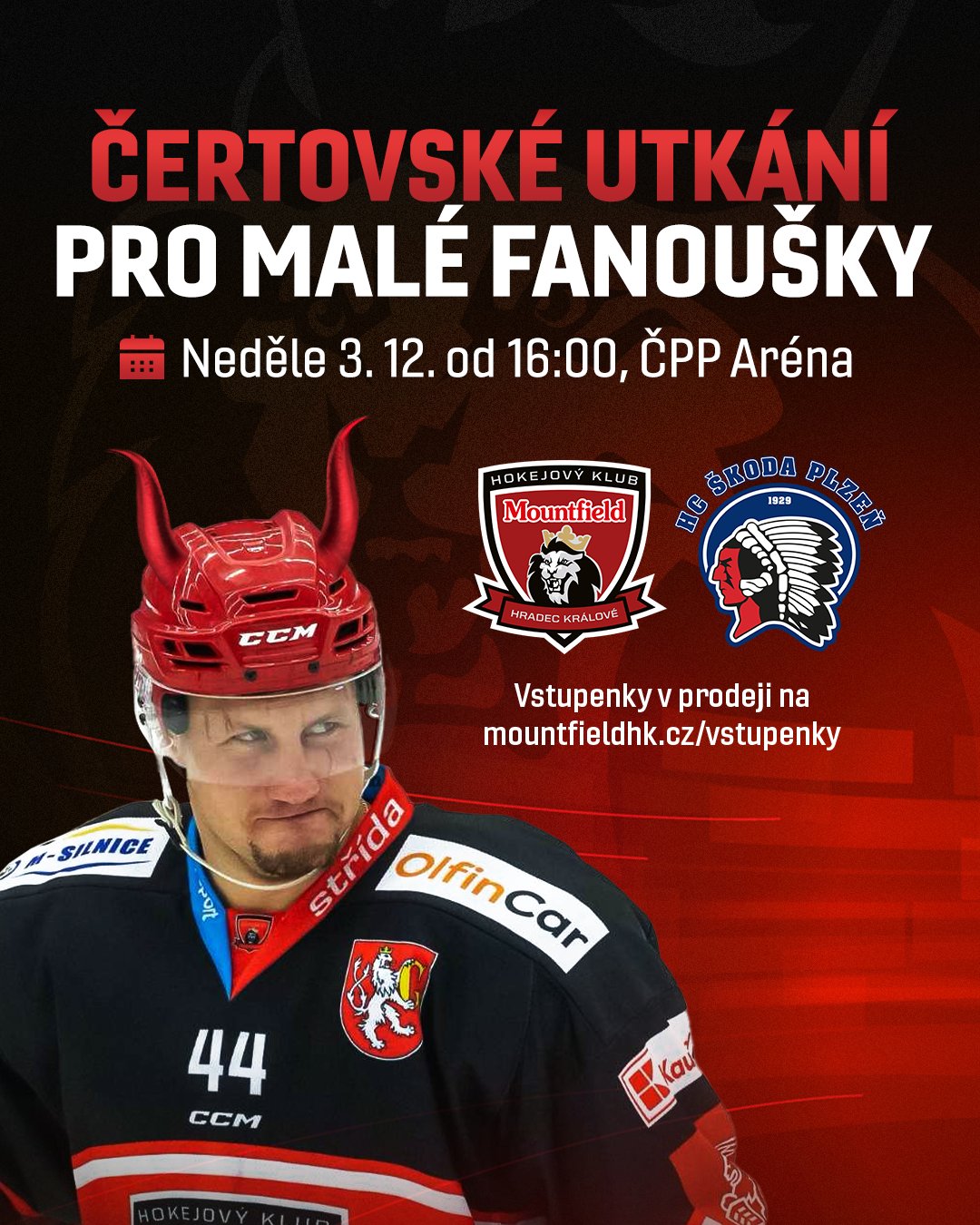 Už v úterý 5. prosince bude po Česku po roce opět chodit Mikuláš spolu s čertem a andělem a bude odměňovat hodné děti. I proto bude nedělní zápas Mountfieldu HK určen těm nejmenším. Do zápasu proti Indiánům půjdou hokejisté Hradce Králové hojně podporování těmi nejmenšími. A chybět nebude i Mikuláš, který zavítá na hokej do ČPP Arény.