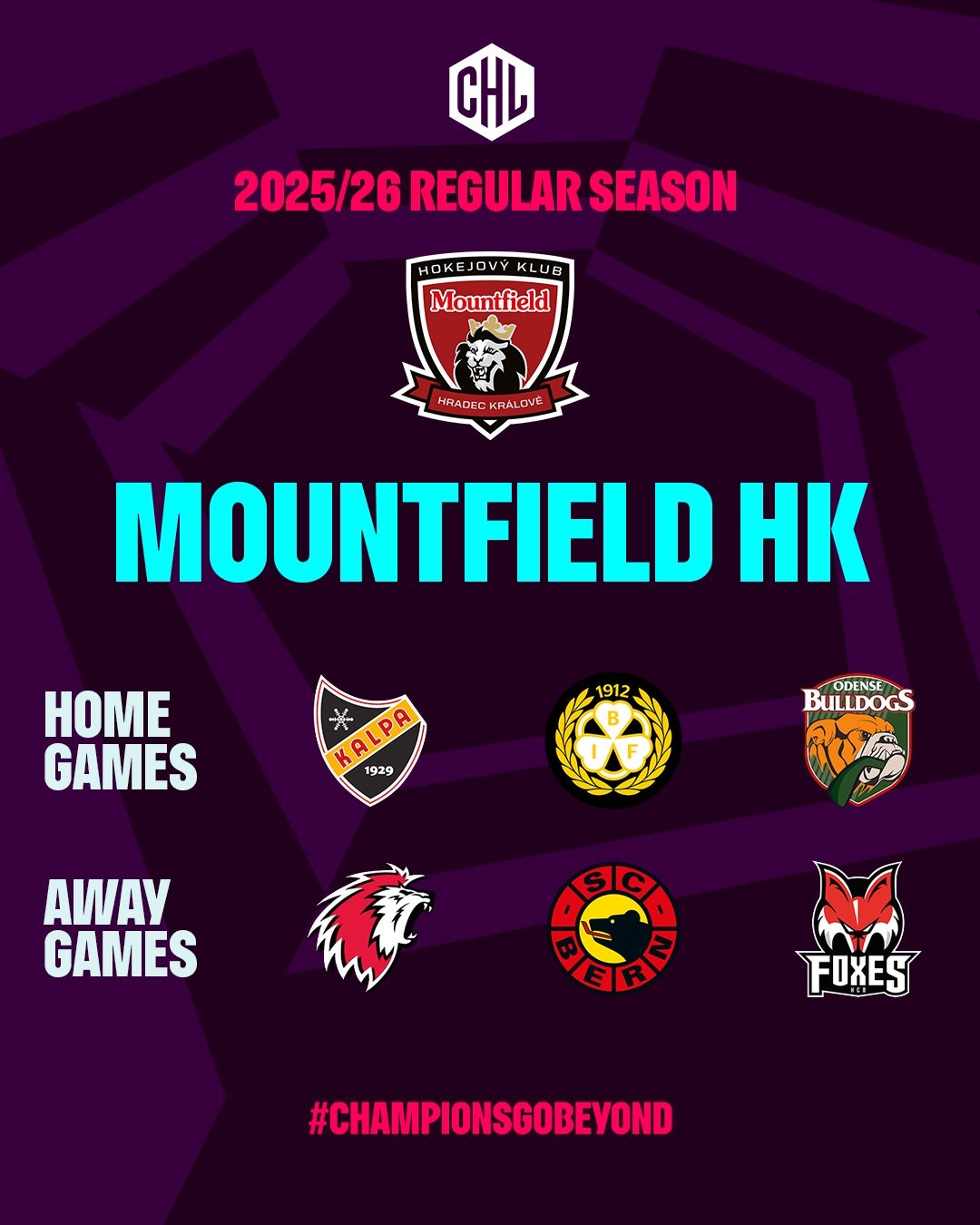 Je jasno, středeční los Champions Hockey League určil soupeře Mountfieldu HK v sezoně 2025/26. Východočeši se doma utkají s finskou KalPou, švédským Brynäs a dánským Odense. Svěřence Tomáše Martince čekají cesty do švýcarských měst Bern a Lausanne a italského Bolzana.