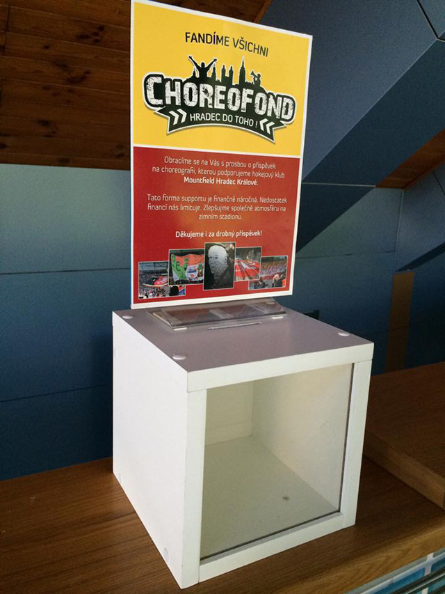 Podpořte tvorbu choreí – fanklub rozmístil po zimním stadionu kasičky na choreofond