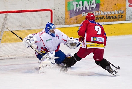 Libor Kašík v přípravném zápase na hradeckém ledě