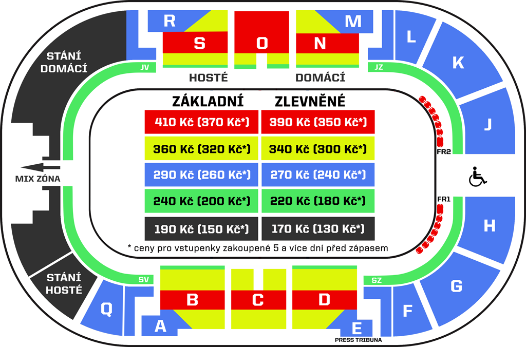 - Děti: Děti do 130 cm mohou navštívit utkání za 10 Kč bez určení místa.
