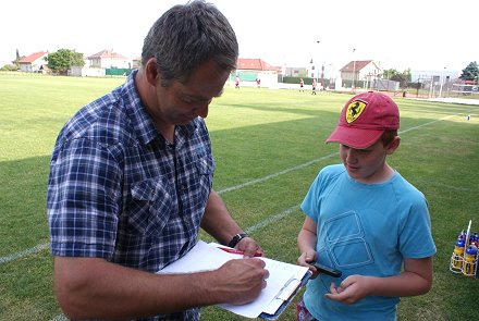 Čtvrteční fotbalové odpoledne zahájil souboj mladší generace, který patřil domácím. Stěžery dokázaly přehrát hokejový mladší dorost 4:2. Podvečerní zápas A týmů ale ovládli hokejisté. K výhře 7:3 nejvíce přispěl dvougólový střelec Šimon Macháň. „Chtěl bych vyzdvihnout i Vláďu Říhu, který výborně chytal v bráně," pochvaloval si jinak útočníka trenér hradeckých Martin Hosták. Na trávníku se postupně vystřídali všichni hráči.