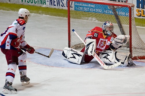 Hradečtí hokejisté dnes potvrdili, že Havlíčkův Brod je oblíbeným soupeřem. I po páté, si odvážejí z Kotliny body a tentokrát všechny tři. K vítězství vedl vynikající týmový výkon, který ocenil i trenér vítězů Pavel Pazourek. ,,Celé mužstvo dnes podalo výborný výkon. Od brankáře až po posledního útočníka. Začali jsme hrát na čtyři pětky a ta čtvrtá nám dala i branku, ale bohužel se postupem času neměla kdy dostat na led. Zase jsme měli vysoký počet vyloučených a celkově ta hra byla strašně rozkouskovaná. Vypořádali jsme se s tím ale výborně a domů si vezeme tři body.“ Hradecký tým měl problémy se starty do utkání. V Kotlině však od úvodních minut diktoval tempo hry a vyhrál první třetinu 2:0. V čem se stala změna? ,,Já bych to neoznačoval jako nějakou změnu. Když si to vezmu zpětně, tak my všude začali dobře. Bohužel jsme ale neproměňovali šance. Dneska se nám podařilo vstřelit dvě branky a to mužstvo hodně zvedlo. Doma je to složitější, jelikož nemůžeme otevřít hru, když k nám přijede soupeř s obrannou taktikou. Doma je to tedy v tomto skutečně těžší. Když to třeba otočím dnes na domácí, tak my jsme jim pomalu deset minut nepůjčili puk. To jen tak na nějakou ukázku. Doma musíme hrát trpělivě, jelikož nedá se do soupeře tři třetiny bušit. Takový současný hokej prostě je,“ vysvětloval trenér Pazourek hradecké začátky utkání. Jako nejtěžší v zápase označil hradecký trenér přežít hru v oslabení. ,,To bylo pro nás v zápase nejtěžší. Od druhé třetiny nás rozhodčí vylučoval prakticky za vše a my od té doby neustále hráli v oslabení. Naštěstí nás podržel v těchto chvílích Filip Luňák. Kdyby domácí snížili na 2:1, tak by to utkání bylo o dost těžší. Nám se ale podařila dát branka na 3:0, která to utkání tak nějak rozhodla.“ Poměr vyloučených byl v zápase nakonec 6:12 a zejména od druhé třetiny trestná lavice hradeckých nevychladla. Hradečtí hokejisté si na hru v oslabení ale již zvykají, alespoň se dá tak soudit dle dvou vstřelených branek v oslabení. Hradecký trenér tuto skutečnost humorně okomentoval. ,,Zrovna jsme si v kabině říkali, že příště nebudeme hrát na čtyři pětky, ale na pět čtyřek,“ prohodil v nadsázce dobře naložený trenér Pavel Pazourek. Jediná věc, která mu kazí dojem z dnešního vítězství je zranění Martina Táborského. Ten z utkání musel po první třetině odstoupit. „Martin už měl v týdnu svalové problémy, ale vzhledem k naší situaci s námi jel. Po první třetině již ale nemohl pokračovat a nám vlastně zbylo pět obránců a dvojice juniorů Seidl-Svoboda.“ Právě již zmiňovaný junior Tomáš Seidl se tak musel zapojit do hry v šesti obráních. Své role se zhostil na výbornou. ,,Tomáš to neměl jednoduché, ale zvládl to dobře. V té třetí třetině jsme ho již museli trošku šetřit, jelikož včera hrál za juniory a teď ho čeká sraz reprezentační dvacítky.“