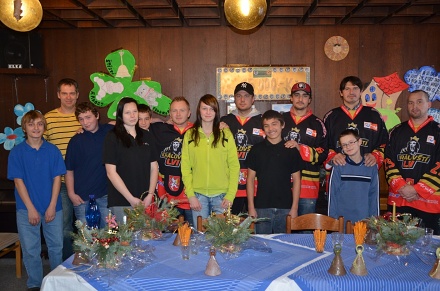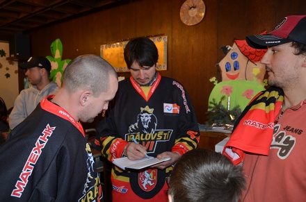 Diagnostický ústav v Říčařově ulici v Plotištích v úterý navštívili zástupci hradeckého hokeje. Přítomno bylo pět hokejistů A-mužstva, a to kapitán Martin Vágner, Milan Karlíček, Michal Tvrdík, Michal Mikeska a Filip Luňák. Nechyběli ani hlavní trenér Martin Hosták společně s generálním manažerem klubu Alešem Kmoníčkem.