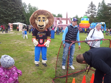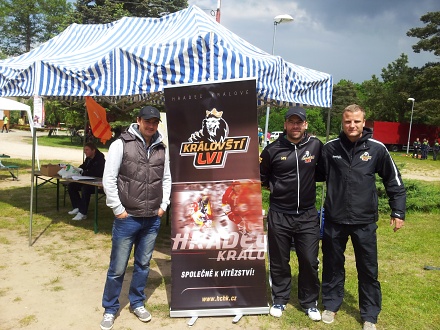 Hokejisty A-mužstva Královských lvů jste mohli v sobotu odpoledne spatřit na Stříbrném rybníku v Hradci Králové, kde měli svůj stánek. U něho si mohly děti, které se zapojily do akce hledání pokladu, vystřelit na branku. K tomu se jim přítomní hráči ještě podepsali, k vidění byl i maskot Mechováček, jenž se s dětmi rád vyfotil.