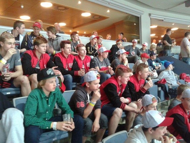 Mountfield HK je za úspěchy kromě dalších odměn obdaroval také luxusním zážitkem – zhruba šedesátka hráčů Hradce Králové vyrazila v úterý 12. května do pražské O2 areny na zápas mistrovství světa mezi Kanadou s Rakouskem. A to navíc do VIP party boxu, kde bylo pro všechny připraveno občerstvení!