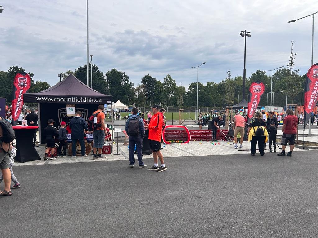 Ani během uplynulého víkendu na slavnostním otevření Malšovického stadionu nechyběl stánek Mountfieldu HK, před zápasem Fortuna ligy mezi Votroky a Sigmou si totiž hradecký fotbalový klub připravil bohatý doprovodný program, ten před stadionem doplnil i stánek hokejového klubu Mountfield HK. Nechyběly opět střelba na branku, náborové letáčky nebo zkoušení výstroje. To vše pod dohledem trenérů mládeže Lvů.