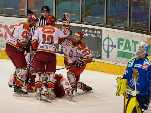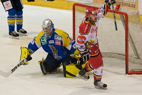 Tak takovýto scénář po dvou suverénních ústeckých výhrách asi nikdo nečekal. V pátek utrhli hradečtí bojovníci vyrovnaný zápas až v prodloužení, ale ten sobotní ovládli v jasném poměru 6:1. V obou případech jsme mohli hledat hrdiny utkání na stejných místech - vzadu více než spolehlivý Tomáš Vošvrda, vepředu produktivní útočník druhé formace. Daniela Volrába tentokrát zastínil Vít Budínský. Ten dvěma góly otevřel sobotní účet, následující dvě branky pak svým spoluhráčům připravil. „Před zápasem jsem se necítil dobře, byl jsem trochu unavený. Ale když dáte v první třetině dva góly, hned se vám hraje jinak,“ popisuje svůj příspěvek štírek druhého hradeckého útoku.