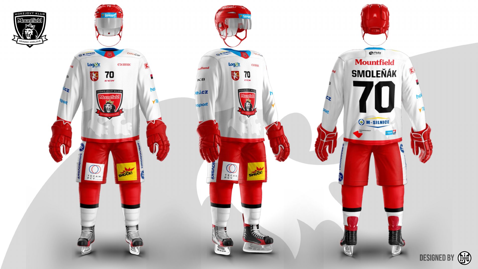 Nové dresy Mountfieldu HK zdobí kromě decentního motivu lvích nohou rovněž vyšité logo klubu a také vyšitá čísla – a to vpředu i vzadu. Totožný motiv bude oblékat rovněž juniorský a dorostenecký tým východočeského klubu. Ve spolupráci s klubovými partnery navíc došlo k tomu, že všechny reklamy jsou bez bílého podkladu, na černé variantě jsou navíc jednobarevné. Za to všem partnerům klub děkuje. Prezentaci ve videu pak klubu zajistila hradecká firma AD-Sound, které Mountfield HK rovněž děkuje za spolupráci. Nové dresy již můžete objednávat ve fanshopu Mountfieldu HK.