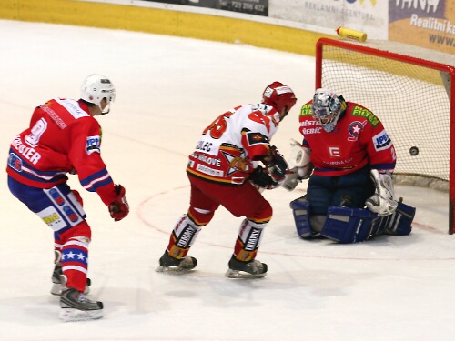 Sobotním derby v Chrudimi odstartovali hokejisté HC VCES Hradec Králové náročnou sérii. Díky odloženému utkání s Ústím nad Labem je teď čeká porce tří vložených pondělních utkání. Prvním soupeřem v nich jim bude SK Horácká Slávia Třebíč. Tým, který prozatím uzavírá tabulku první ligy se ziskem pěti bodů. Ty však Třebíč nasbírala v posledních třech duelech a Hradec tak nečeká lehké utkání. ,,Třebíč hraje doma nepříjemně a jde s formou naohoru," uvědomuje si hradecký trenér Pavel Pazourek. Pondělní utkání začíná na třebíčském zimním stadionu v 18:00.