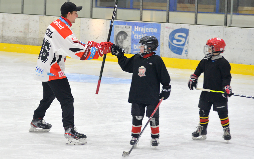 Své vzory často hokejisté Mountfieldu nacházejí v hráčích hradeckého A-týmu. Chodí se společně dívat i na zápasy? „Kluci chodí sami, ale měli jsme v srpnu příměstský tábor, kde jsme vzali všechny kluky na přípravné utkání A-týmu, pokračuje. Jak se mladí hráči chovali během tréninku se svým patronem Alešem Jerglem? „Kluci se chtěli Alešovi ukázal, myslím si, že to bylo hodně vidět. My, co s nimi chodíme pravidelně, tak jsme tu změnu mohli pozorovat. Na stanovišti, které měl Aleš, chtěli opravdu předvést, jak jsou šikovní. Aby je mohl pochválit. Je super, že se přišel podívat, děti o tom mluví doteď,“ popisuje radost svých svěřenců.