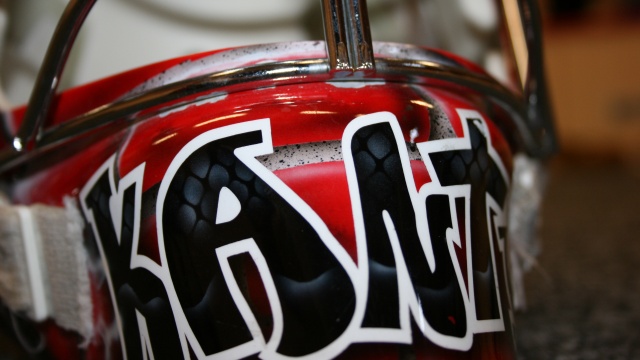 „Nástřik určitě, jinak masku samu o sobě si nechávám většinou dva roky, déle to nevydrží. Pak už se i materiál opotřebovává a nástřik na tom nedrží. Klesá i bezpečnost, takže ji mám maximálně dvě sezóny. Po každé sezóně se musí nechat vevnitř vypolstrovat, mění se gumy a plasty. Mřížka se mění tak dvakrát třikrát za sezónu, protože se ohne.“