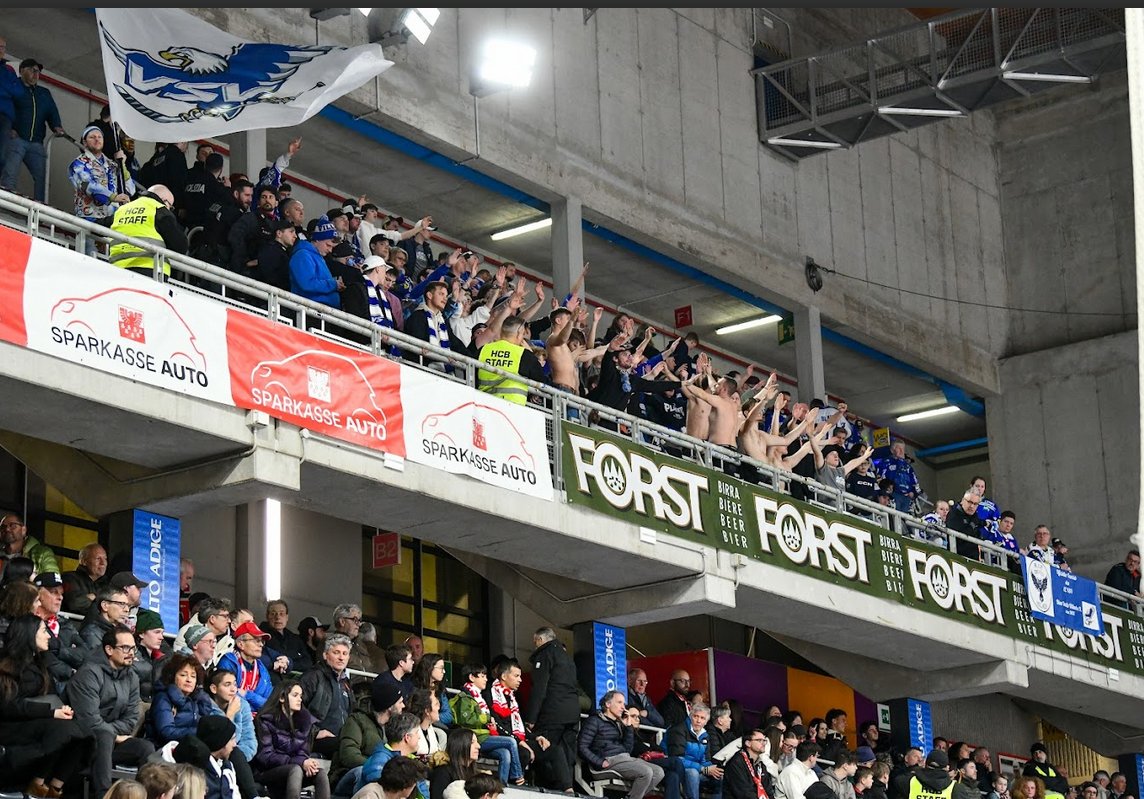 - Sektor hostů označen jako "F" – sektor hostů je umístěn na straně za brankou v horním patře. Během zápasu nebudou v dolním patře žádní jiní diváci. Toalety a občerstvení jsou přímo u sektoru.