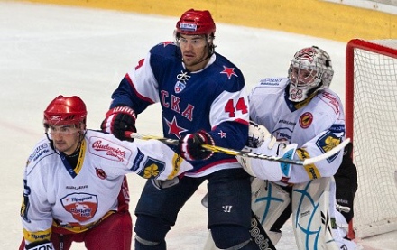 Jevgenij Arťuchin dělá rozruch před brankou Jakuba ČechaV sestavě hradeckého celku se také objevily další nové tváře. Luděk Brož, Ondřej Poživil nebo Lukáš Chmelíř, který už ale v minulosti oblékal dres Hradce.