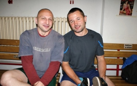 Jiří Kadlec s Martinem Koudelkou - znaveni z letní přípravyMimo tvrdé dřiny se v květnu konalo bezpočet akcí. Hokejisté se například podepisovali fanouškům na Stříbrném rybníku, nebo také sehráli fotbalové utkání s královéhradeckou Třebší.