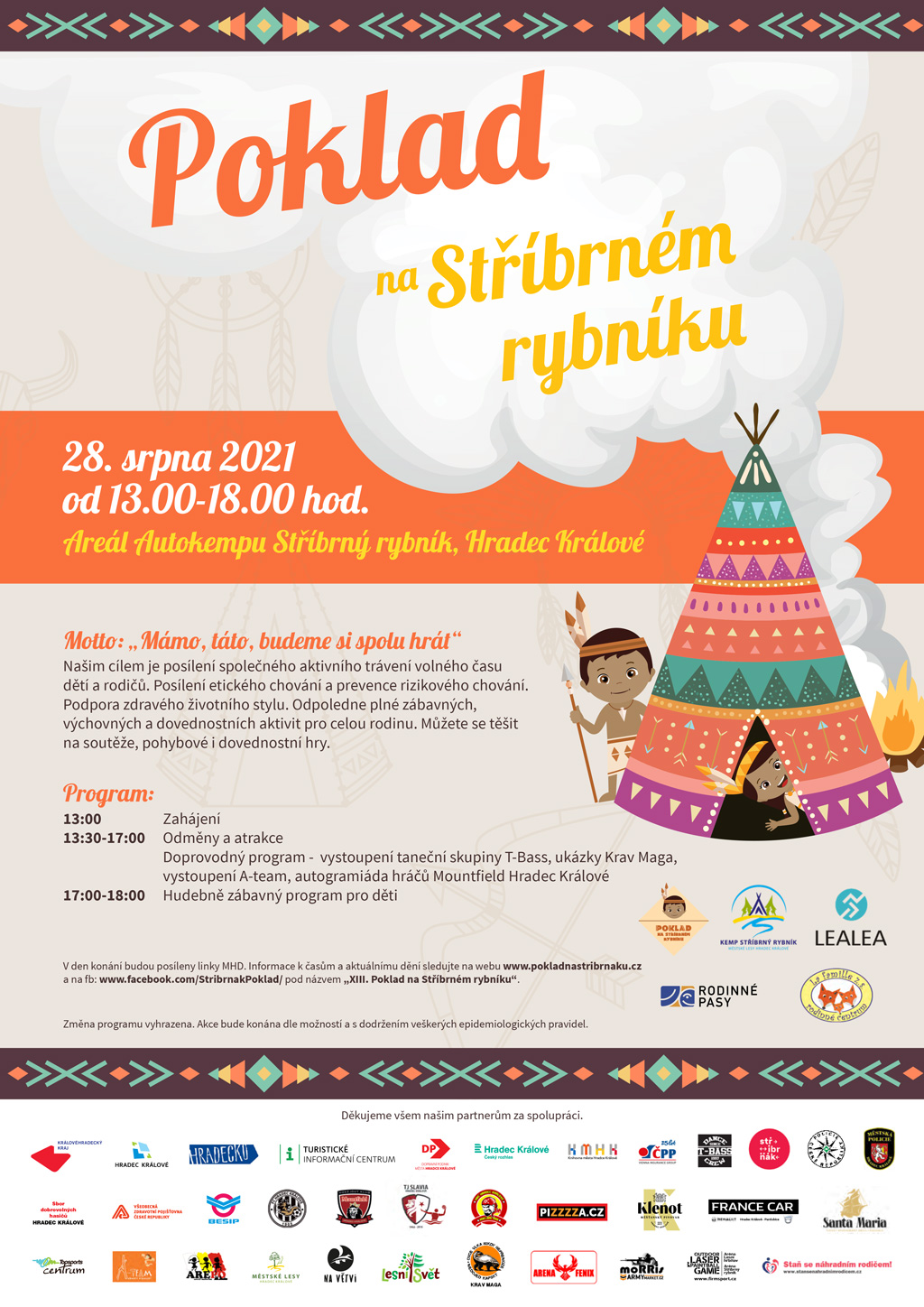 V sobotu 28. srpna 2021 se v areálu kempu Stříbrný rybník bude konat už 8. ročník úspěšné akce s názvem Poklad na Stříbrném rybníku. Pro ději je připravena spousta zábavy na více než třiceti stanovištích, z nichž jedno obsadí Mountfield HK. U stánku hradeckých hokejistů bude probíhat mimo jiné nábor do kurzu ledního hokeje, v 15:00 na místo dorazí také trojice hráčů A-týmu – Henri Kiviaho, Richard Nedomlel a Michael Gaspar – která se bude všem příchozím podepisovat. Více informací na pokladnastribrnaku.cz