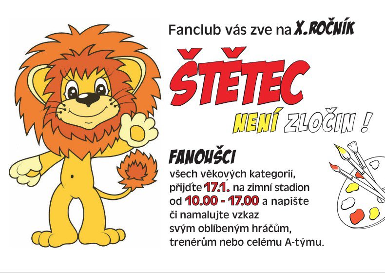 Již tradicí je, že FANCLUB HCHK 2007, z.s. pořádá akci s názvem Štětec není zločin. Do ČPP Arény tak následně mohou dorazit připravit choreo podle svého gusta malí i velcí příznivci hradeckého hokeje. Letos je akce fanklubu v plánu již podesáté, a to v sobotu 17. ledna od 10:00 do 17:00. Přijďťe si namalovat nebo napsat vzkaz svému týmu nebo oblíbenému hráči!