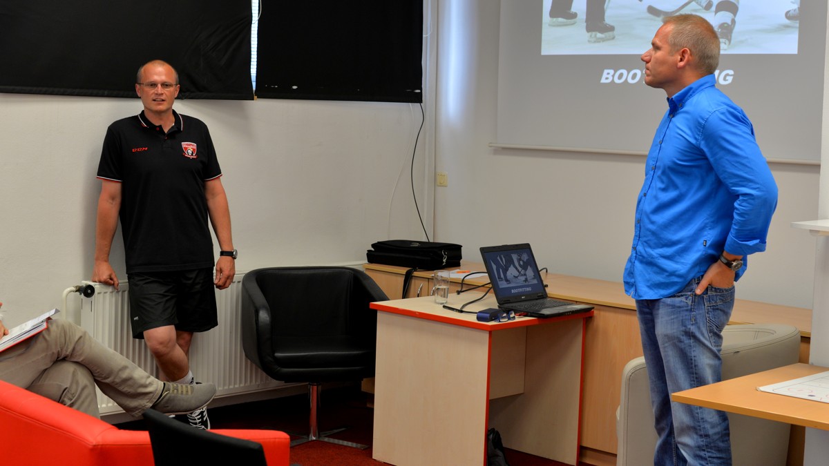 Trenérský tým hradeckého klubu přispěl do diskuze dvěma přednáškami. První z nich si vzal na starost sám vedoucí hradecké Akademie a trenér juniorů v jedné osobě Aleš Krátoška. S kolegou Petrem Purdou si připravil prezentaci týkající se obecného zatížení dolních končetin hokejistů – došlo na témata, jako je bruslení, stabilita či problematika plochých nohou a možnosti jejich léčby.