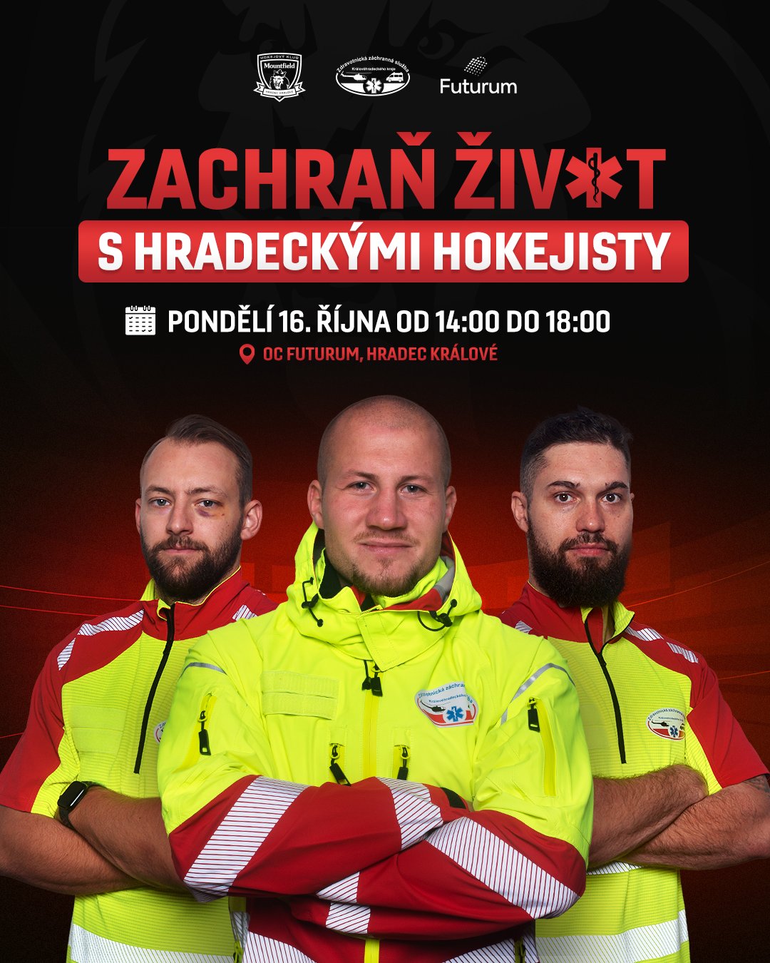 Každý rok se 16. října koná Světový den záchrany života. Letos jej veřejnosti připomenou i hokejisté Mountfieldu HK, a to spolu se Zdravotnickou záchrannou službou KHK, přičemž všichni v rámci speciální akce zavítají do Obchodního centra Futurum Hradec Králové, aby šířili zdravotnickou osvětu mezi fanoušky a veřejností.