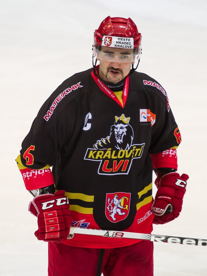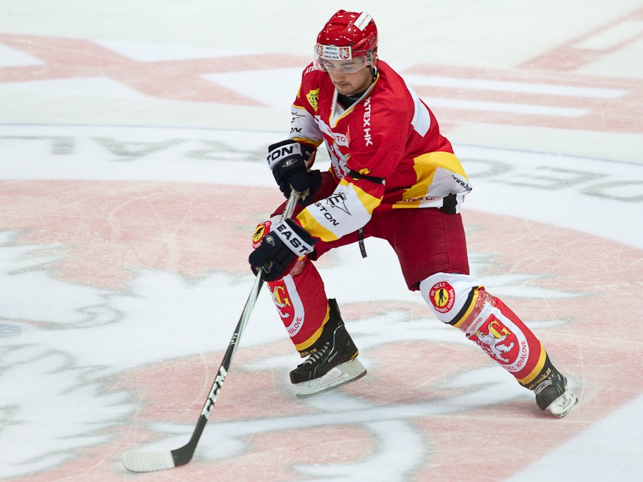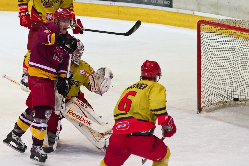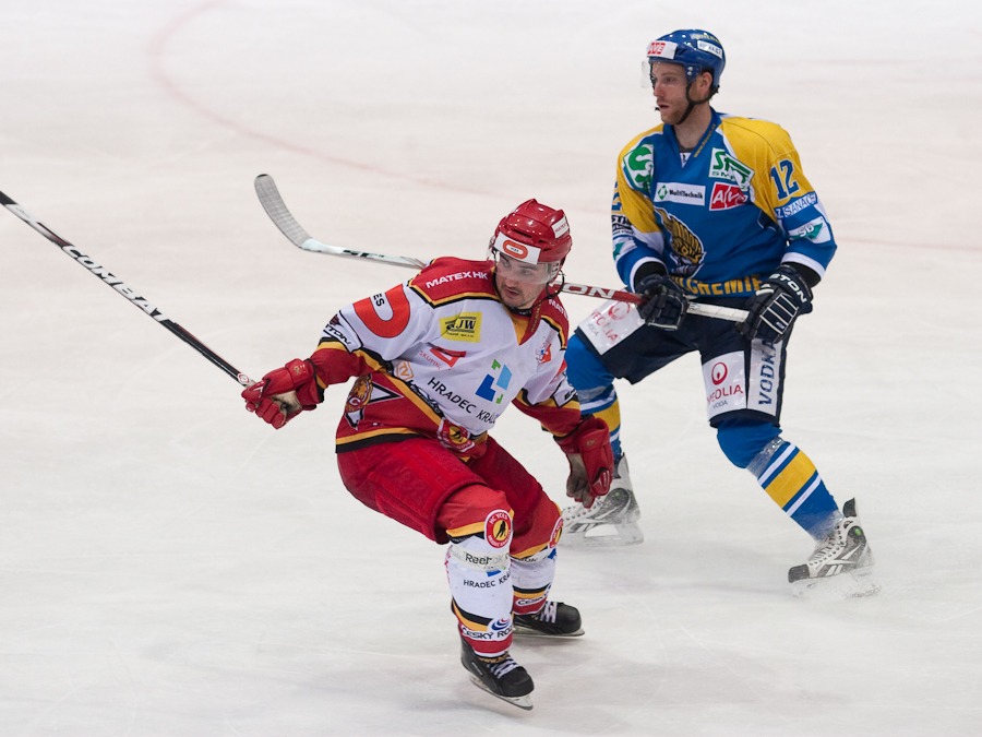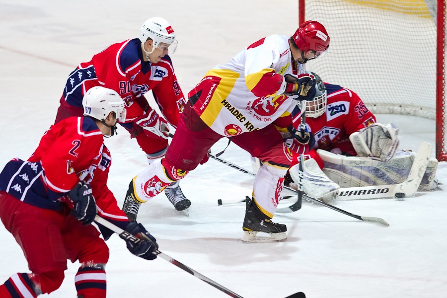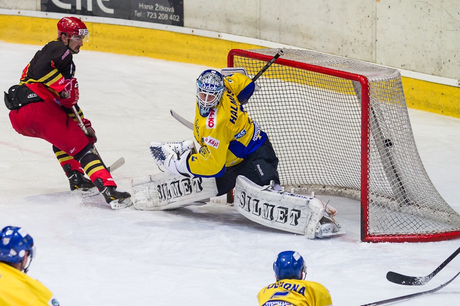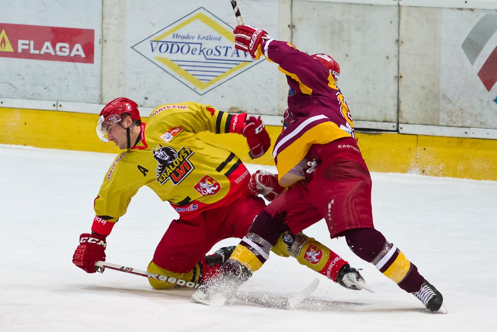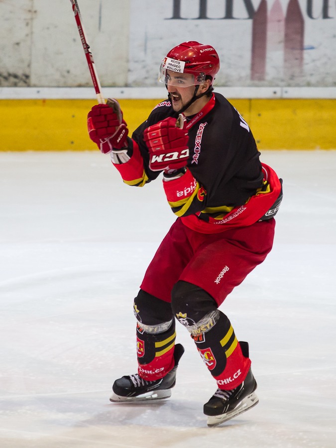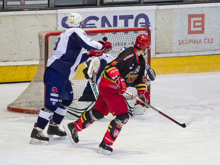 Jiří Říha v pádu vrazil do hradeckého brankáře