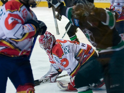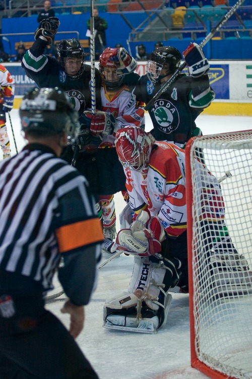 Netradiční záběr na Jaroslava Pavelku, který právě inkasoval branku