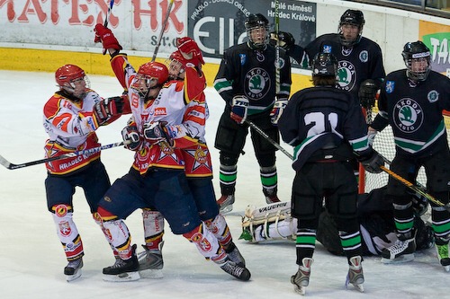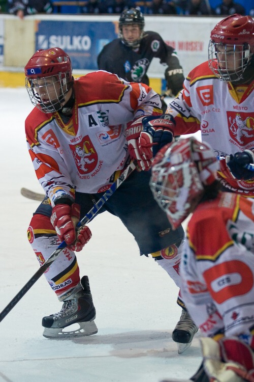 Vít Hradecký vyhrál osobní souboj, blíže ke kotouči Marek Červený
