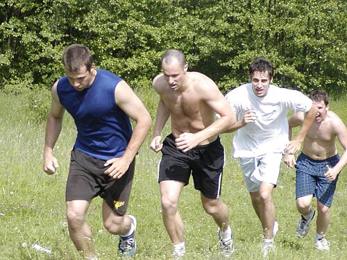 Zkušení beci Michal Pavlů a Patrik Černák, za nimi Jiří Šimoníček