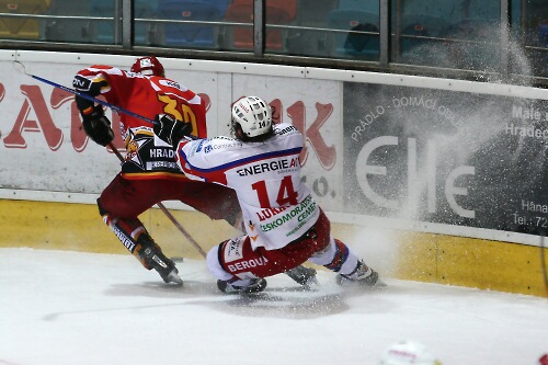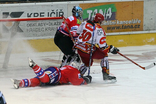 Hradečtí vyrovnávají na 1:1, střelcem branky je Michal Pavlů