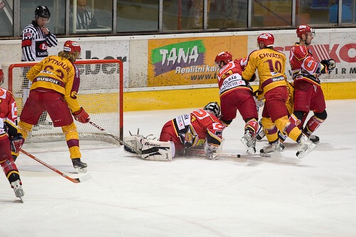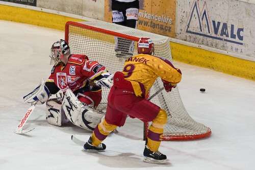 Jiří Dobrovolný brání kapitána Jaroslava Roubíka