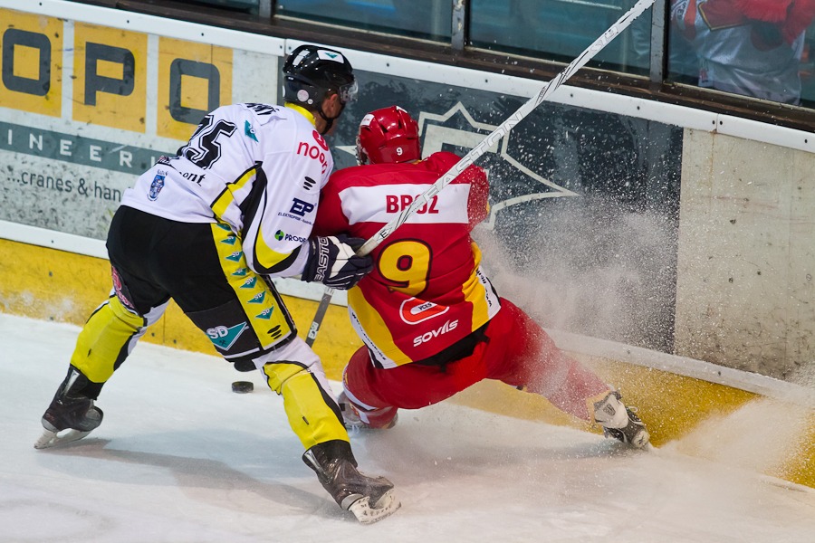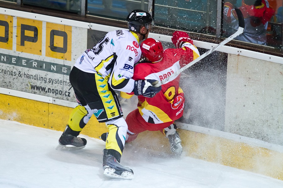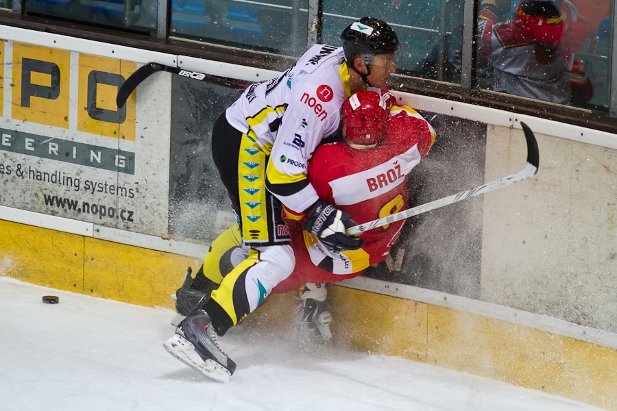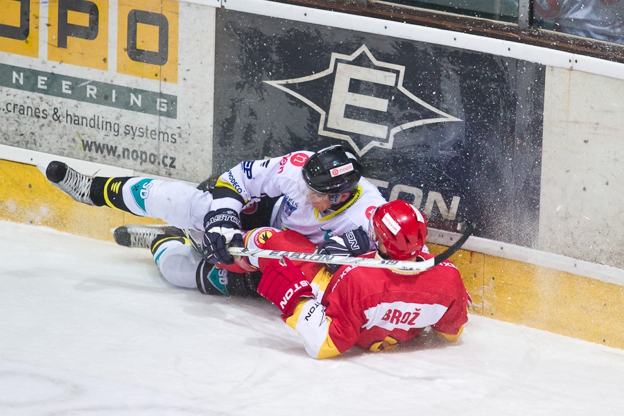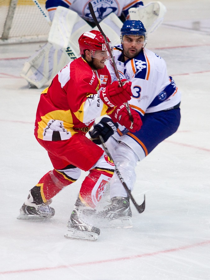 Luděk Brož kličkuje před Martinem Falterem...