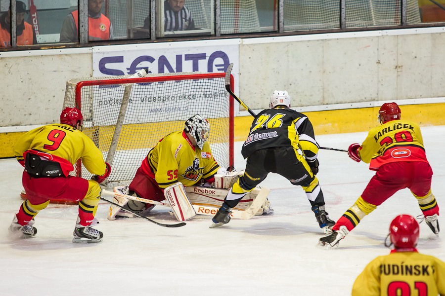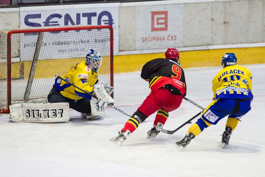 ...a když už je písecký brankář úplně bezmocný...
