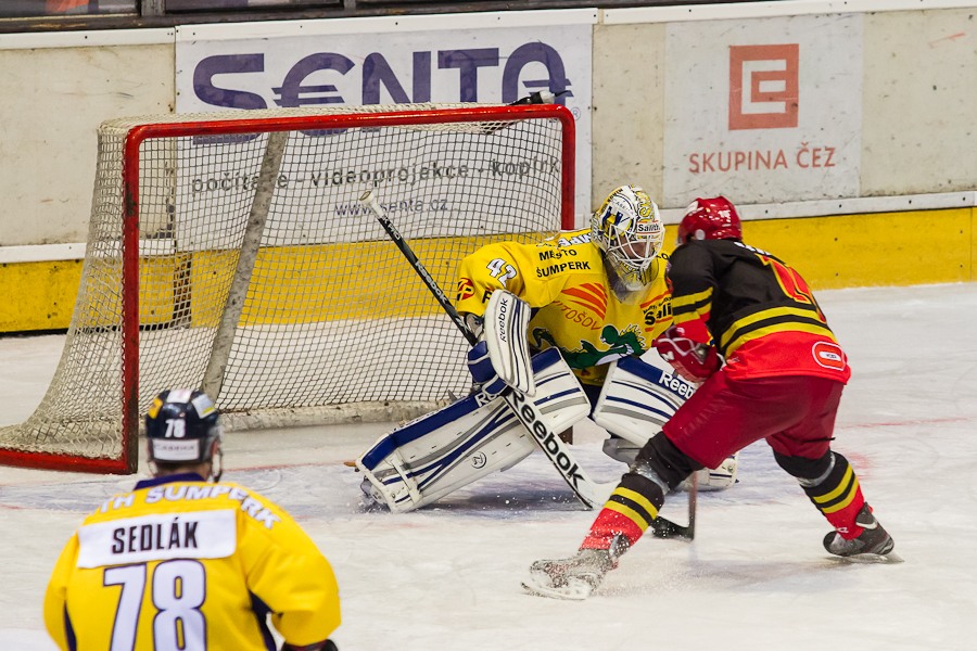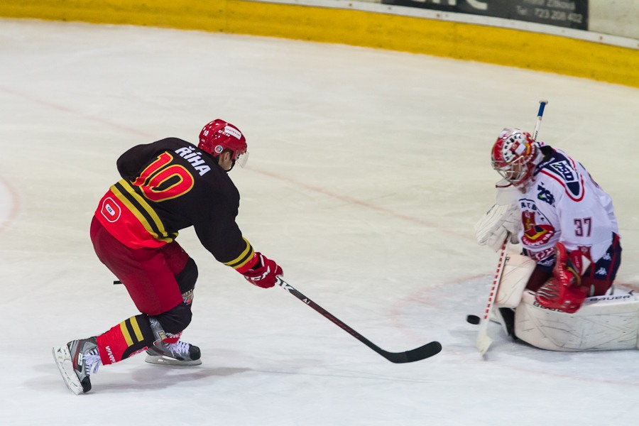 Znovu Jan Berger. Brankář Vojtěch Sedláček si však puk našel