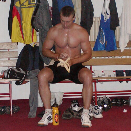 Zdeněk Kubica se natahuje po odraženém kotouči...