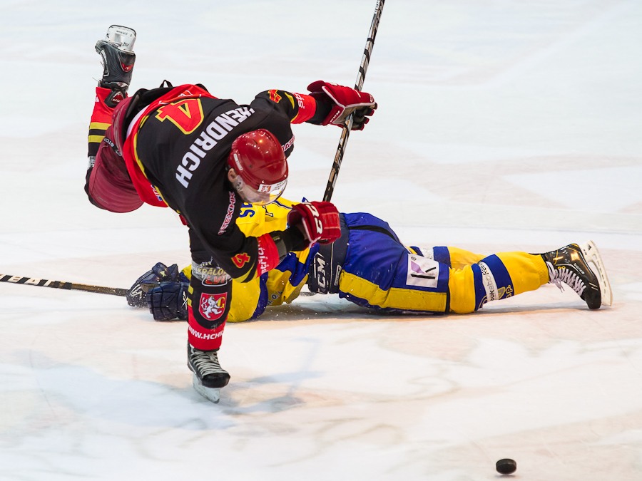 Jiří Hendrich odhazuje dotírajícího domácího Třetinu
