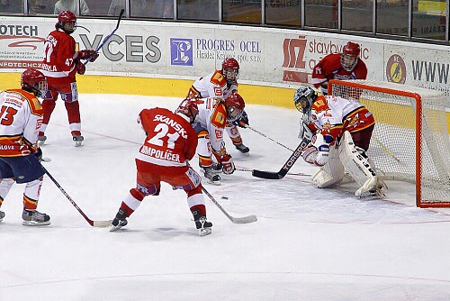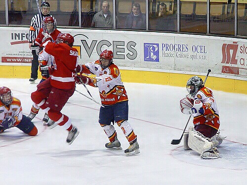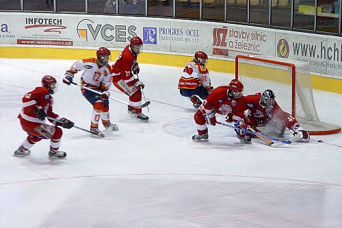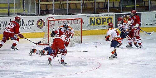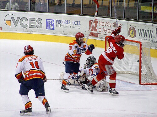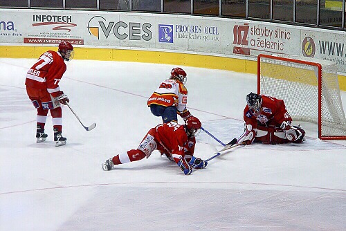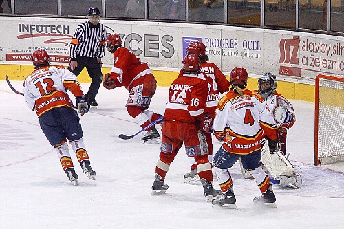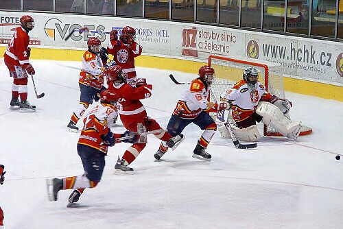 ... a tak se Hradečtí bránili více než minutu pouze ve dvou hráčích