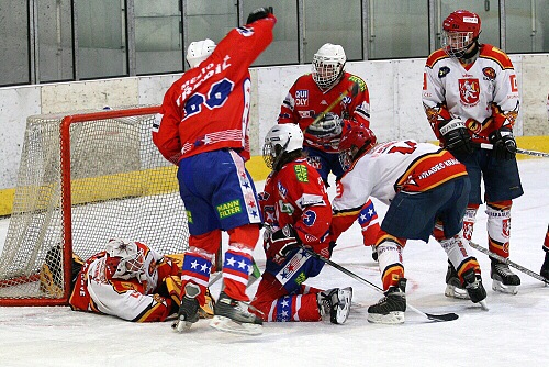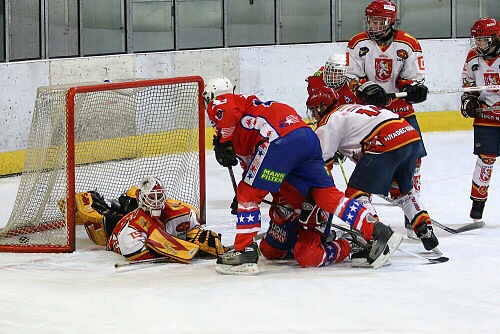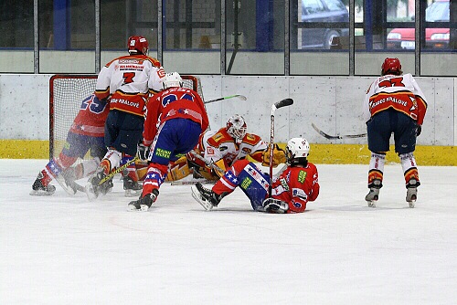 Další tvrdá střela od Václava Pánka, kterou tečoval Milan Valášek