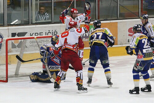 Radost hradeckýh borců z branky Jiřího Hendricha