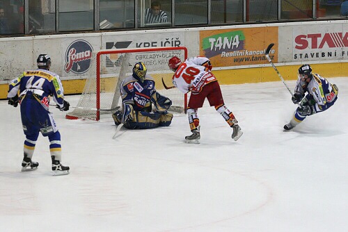 Pavel Suchý jemně tečuje střelu Milana Karlíčka - 4:2