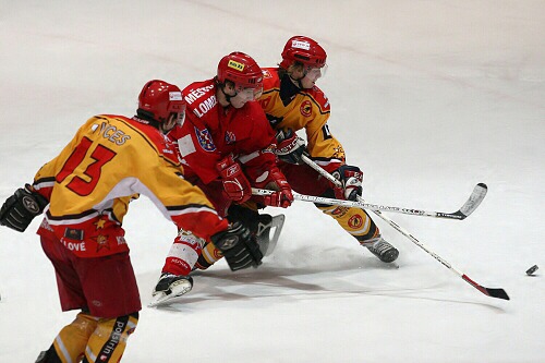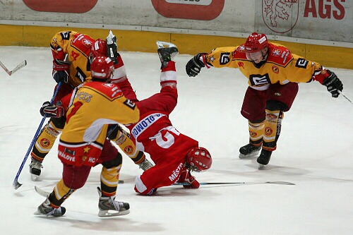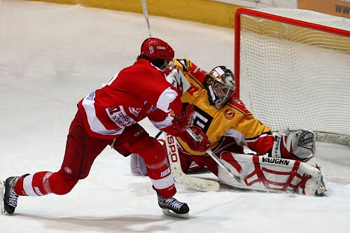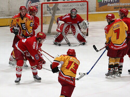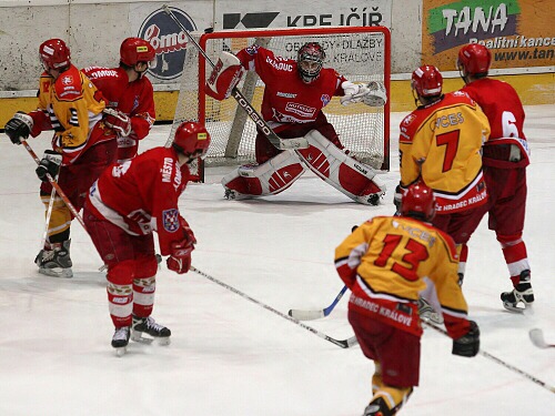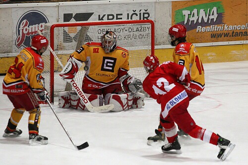 Miroslav Brož sleduje kotouč mířící na jeho bránu