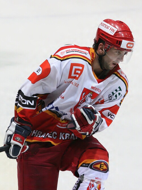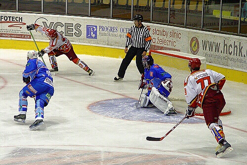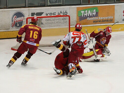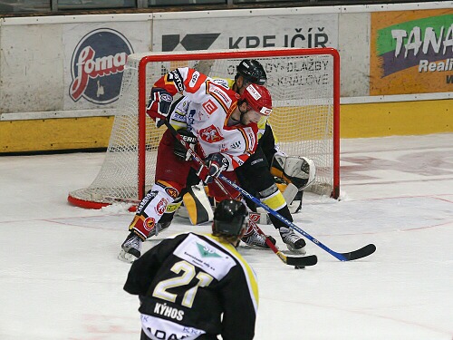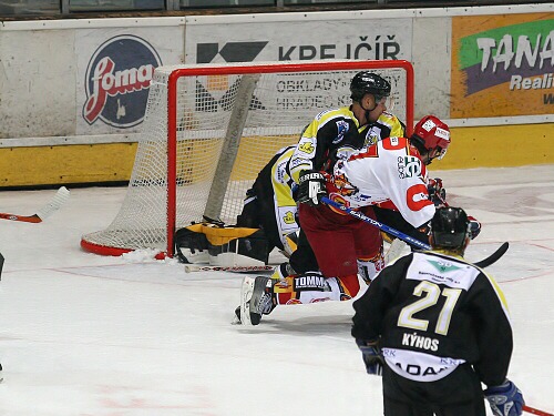 Petr Domin se trefil přesně pod víko a poslal Hradec do vedení - 2:1