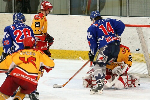 Hradec jde do vedení, Petr Pospíšil se raduje z druhé hradecké branky