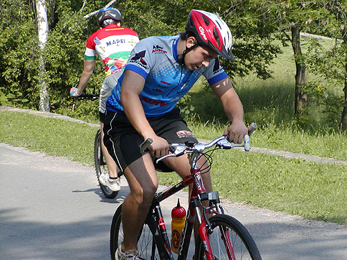 Vedle Lukáše Daňa šlape Miroslav Brož, za nimi Jiří Šimoníček
