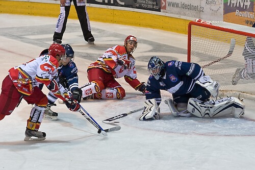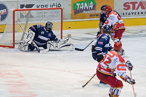 Jan Hruška a Marcel Úlehla obléhají branku benátek.