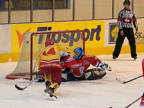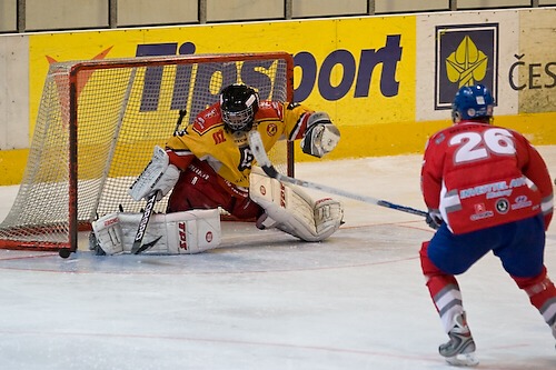 Lukáš Zörkler zavalil klatovského brankáře Ulče