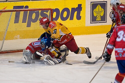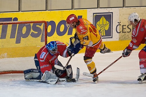 Lukáš Zörkler se natlačil až k brankáři Klatov