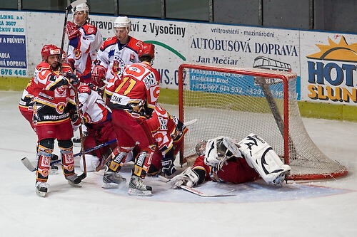 Jedna z několika potyček před brankou Filipa Luňáka