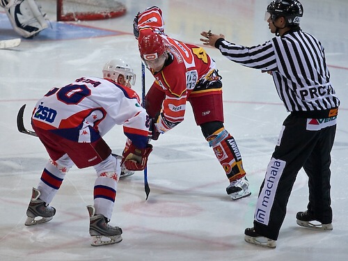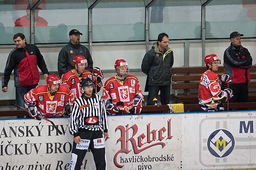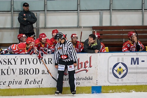 Čárový rozhodčí vysvětluje své rozhodnutí hradecké lavičce