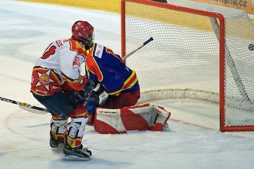 Pavelka s Čápem vyřešili situaci před bránou, kotouč sbírá Lukáš Novák