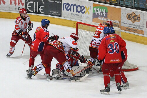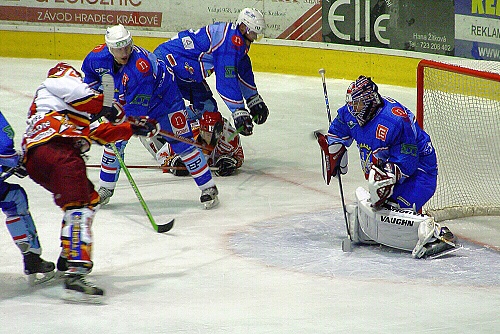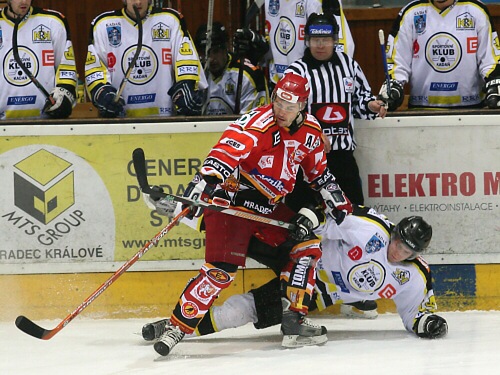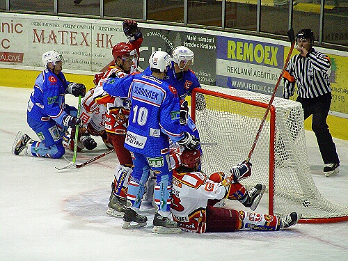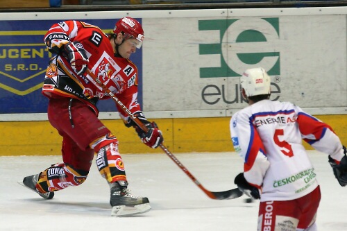 Pavel Suchý jemně tečuje střelu Milana Karlíčka - 4:2