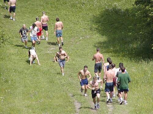 Masér týmu Manfréd Sattler má po tréninku plné ruce práce